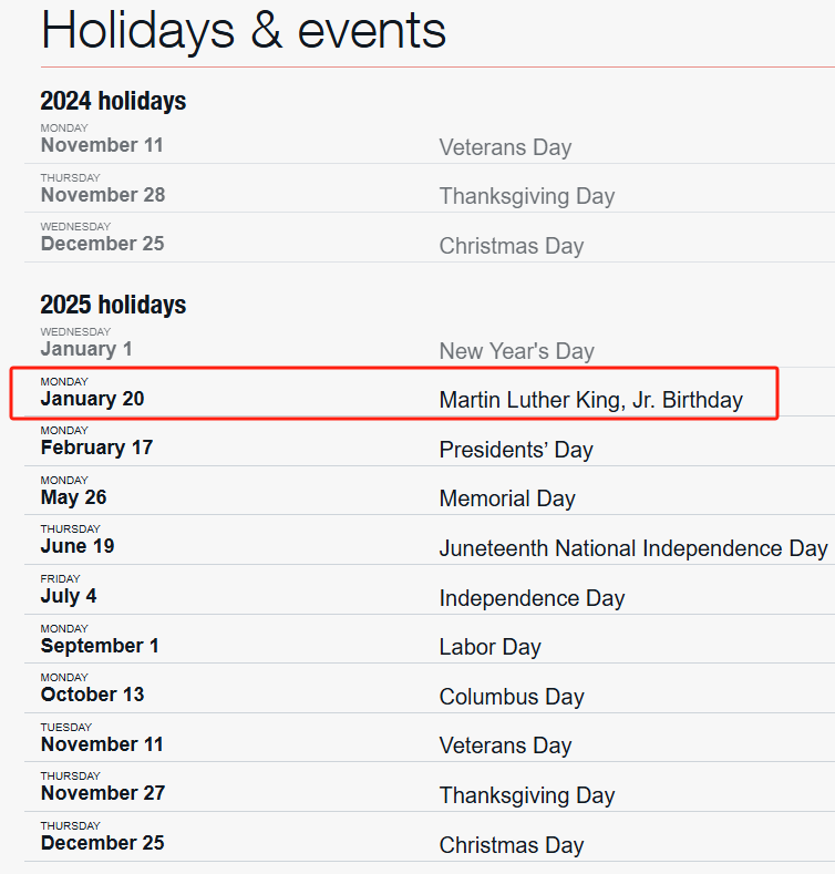美国时间1月20日 Martin Luther King, Jr. Birthday 放假通知